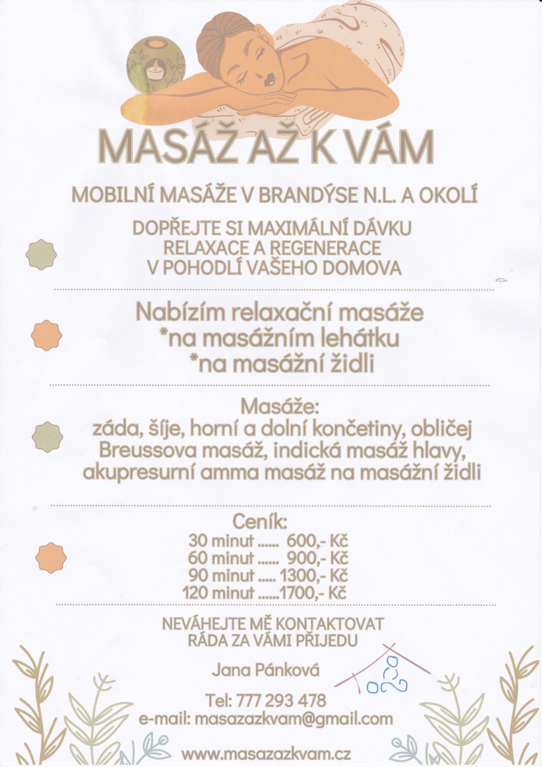 Zajistime relaxační masáž přímo v prostorách hotelu. Více informací najdete na letáku zde.